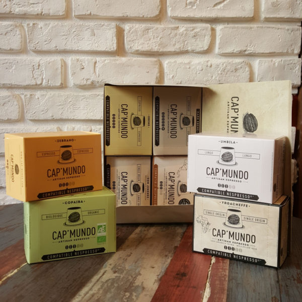 Coffret découverte Haute Couture 80 capsules – Cap’Mundo. Belle idée cadeau pour faire plaisir à un amateur de cafés de qualité. Ce coffret haute de gamme de Cap’Mundo comprenant 8 cafés d’exception. Parfait pour découvrir les meilleurs cafés en capsule. Ce coffret de 8 boîtes de 10 capsules, de mélanges Exclusifs aux intensités différentes et des notes de dégustation variées.Découvrez notre gamme de cafés en “capsules”